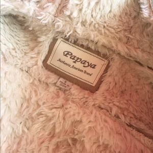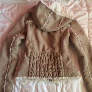 Light camel color, cream fur all inside, lightly used like new, excellent condition, secret pockets inside