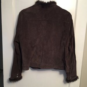 Chocolate suede lined jacket with faux fur around neck. Beautiful jacket in great condition.