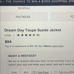 Dream day taupe suede jacket- worn once!! Excellent condition.