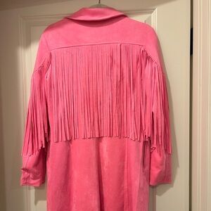 Stylish pink fringe jacket perfect for adding flair to any outfit. Ideal for casual or dressy occasions.