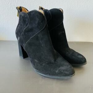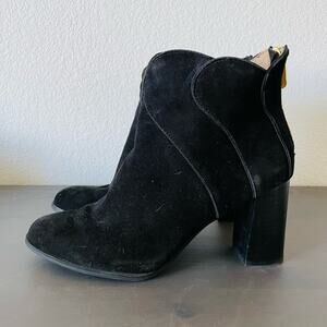 Suede Leather Ankle Boots with Art Deco Seaming and Gold Zipper size 7.5