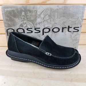 Suede Leather Loafers Black Slip on Comfort Shoe NEW CL 'Passports' 7.5M NEW