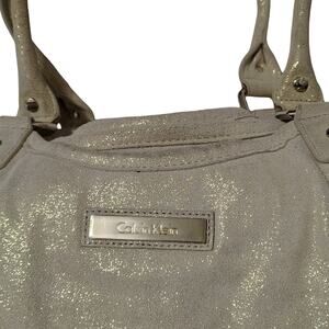 Suede Leather Metallic Cream Gold Speckled Calvin Klein Shoulder Bag Top Handle