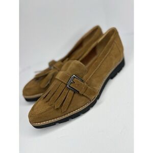 Suede Leather Pointed Toe Slip On Fringe Chunky Loafer Franco Sarto Darius 8 M