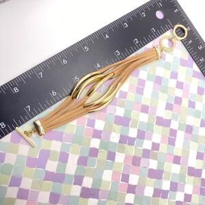 Suede Leather Toggle Clasp Gold Bar Beads Bracelet Bohemian. Has two rings for sizing, from 7"-8". Eight suede leather strands each with gold tone bar bead. Very good condition, most likely only gently worn, if at all. #30