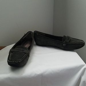 Grey Suede Laura Ashley loafers worn twice. Please note that the strap on the left shoe is frayed and the right strap has snapped (pics above).