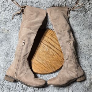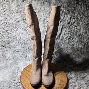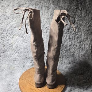 Suede Over The Knee High Boots Womens Size 6.5-7/37 Lace Classic Flat Zip Boots