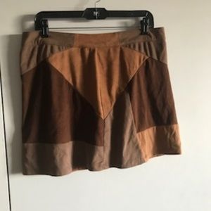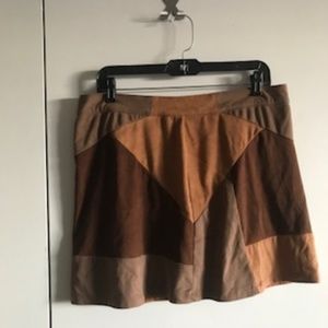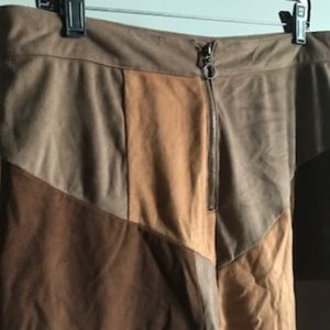Gorgeous suedette skirt that is so soft. Size 10 from New York and Company. It could work for a curvy size 8 or a size 12 with smaller hips. Very cute for going out or a cowgirl look. Unique style but very comfortable. Can be worn high on the waist out for a night out or at the hip for a more modest look.