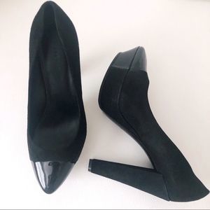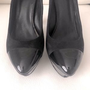 Beautiful sexy platforms in suede with patent leather toe and platform areas