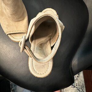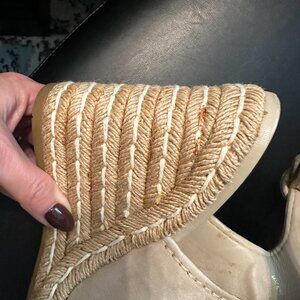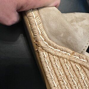 These wedges are so comfortable and are in used condition. There are areas where the glue is coming through but it is not noticeable when you are wearing them and there is a LOT of life left in these shoes. Please look at pics closely and ask any questions.
