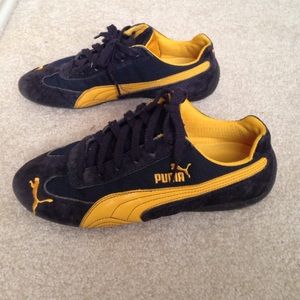 Navy & yellow retro puma sneakers. Great used condition. They are marked 7, but will fit women 7.5 perfectly.