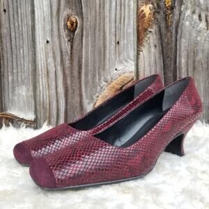 Suede & Snake Print Pumps Size 9.5 Square Cap Toe Dark Red Leather Heels Proxy