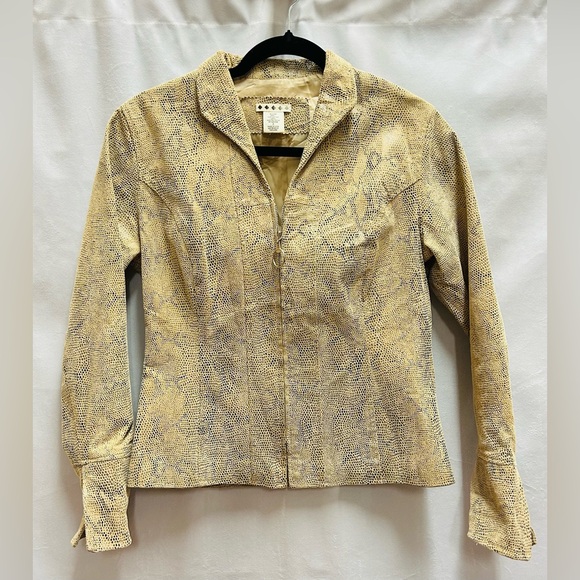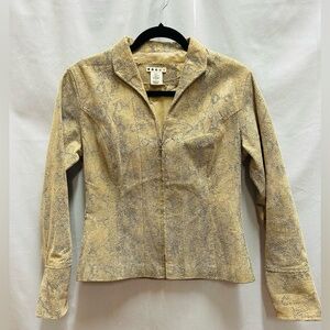 Suede Snakeskin Printed Fitted Zip Up Jacket S