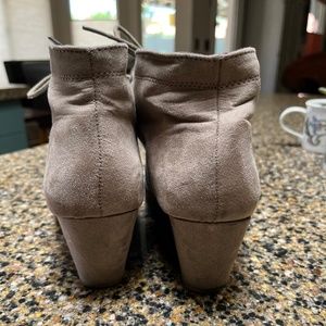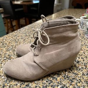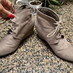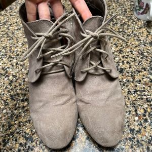 barely been worn, suede ankle boots with an inch-high wedge, lace up