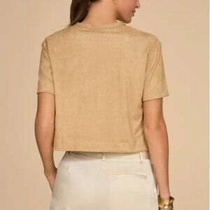 Tan suede cropped t-shirt, loose-fitting soft material.