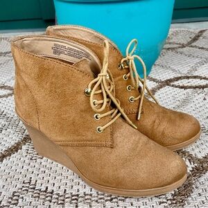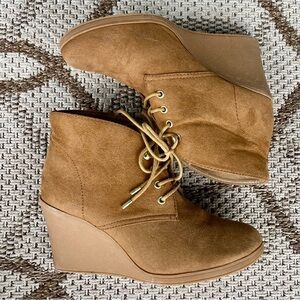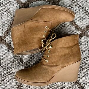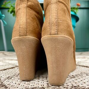 Suede Wedge Ankle Boots 9 neutral tan