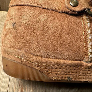 Suede Wool Lined Mid-Calf Boots Tan Ankle Strap Accent size 9 Cozy Tara M Zoe