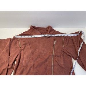 Suede Zipper Detailed Crop Biker Jacket Rust Medium Color Size Small