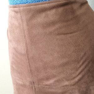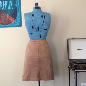 From the office to a night out with the girls, this skirt has got you covered. Made of a touchable, soft faux suede, this skirt hits the sweet spot between a pencil skirt and an a-line. It is worth noting that the size on the tag is a US 10, but fits more like a 12.