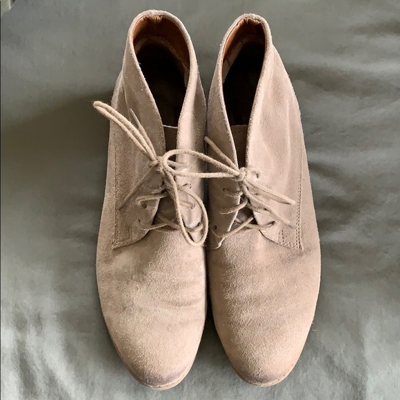 Suede lace-up booties with a small heel, great condition