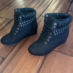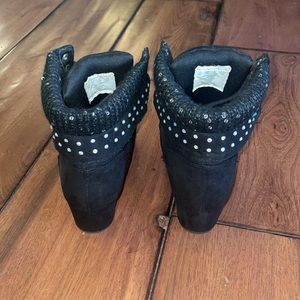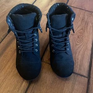 These were tried on in the house but never worn outside. In excellent condition. The top part around the ankles has sequins and diamond-like details. These are a girls size 3 which is equivalent to women’s size 5