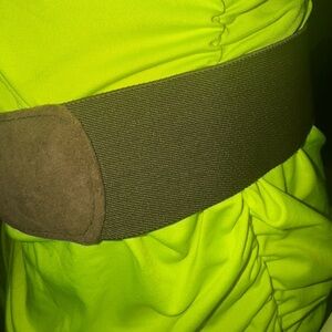 Suede elastic back Olive green Belt With Gold Circular Buckle Size M/L