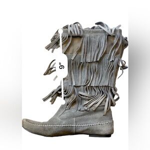 Suede fringe moccasin-style boots in great condition