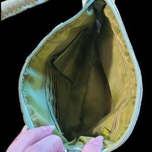 There is a minor little rip on the handle and some brown spots no the back that is barely noticeable.