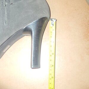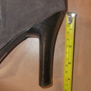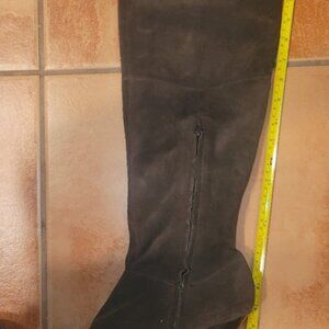 Gorgeous, can be folded over, worn up or slouched. Brown suede material , 4" heels, almond toe with detail, zipper ankle for ease in gettin on and off. Hardley ever worn. I just cant do the tiny heel and at 6' tall dont really need it ;-)