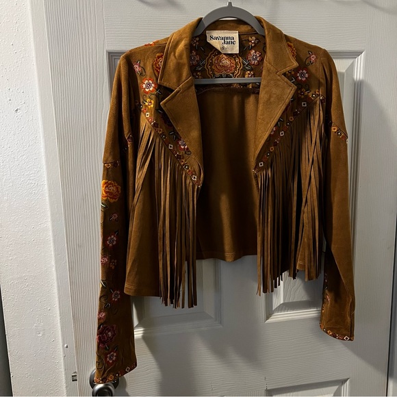 Suede jacket with fringe and embroidery. Worn once. Perfect condition.