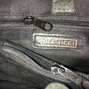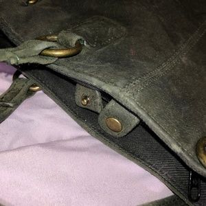 Suede leather handbag w strap & zipper pouches.