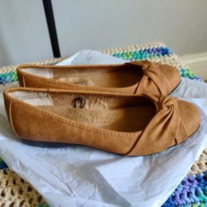 Excellent condition. Clean. Very comfortable, cushion, memory foam insoles. Tan suede. Size 6.5, true to size.
