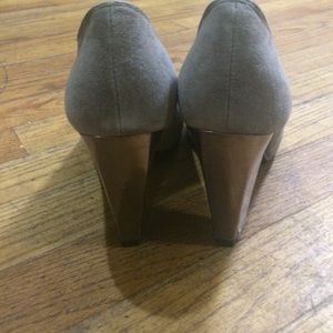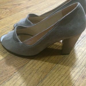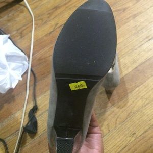 Gray suede peep toe heels. Brand new. Never worn. Small scratches on heel.