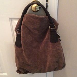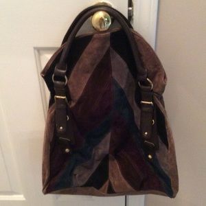 Suede purse with chevron pattern on the front. This is a BIG purse. Snap closure