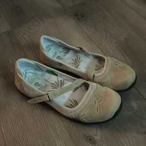 Beautiful and comfortable suede slip on shoes with Velcro closure and removable insoles. The insoles provide excellent support so that your feet feel like you’re walking on clouds. Excellent used condition.