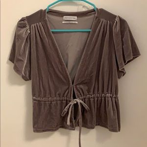 Grey suede top from UO! Good for wear in with a tank top or just wear it. Tie in the front. I actually only wore it once