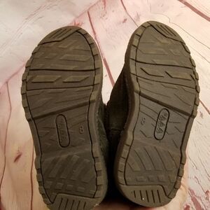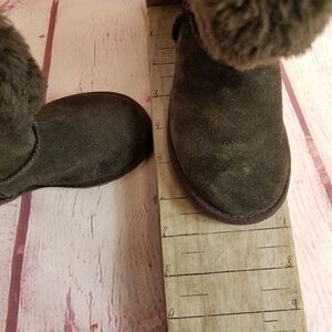 Suede boots, fur lined. I don't know the name brand, it just has three hearts. Like new.