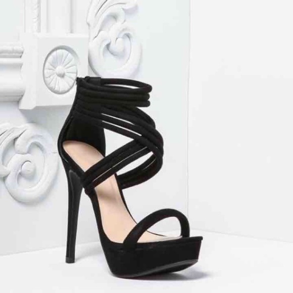 Suedette Multi Cross Strap Heels 7.5 NEW