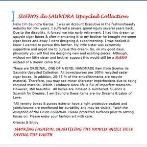 Suenos de Saundra Upcycled Collection, HERITAGE, Shoulder Strap, Cigar Box Purse