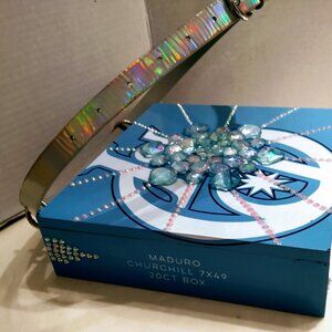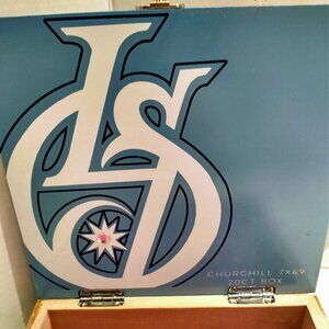 * RARE BABY BLUE/WHITE CHURCHILL CEDAR CIGAR BOX