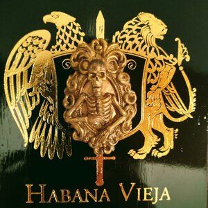 * RARE BLACK + GOLD VIEJA CEDAR CIGAR BOX