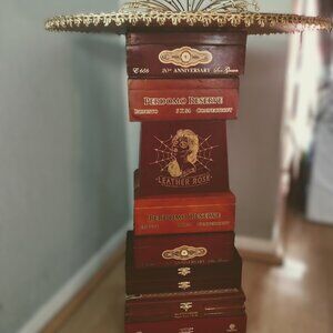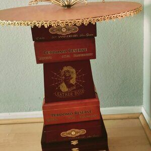 Suenos de Saundra Upcycled Rare Leather Rose Cigar Box Table ONLY LOCAL PICKUP