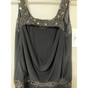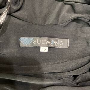 Suewong Black Cocktail/ Party Dress Sz 12 Beaded Sequence Scoop Back. In good condition! Stretch! Absolutely gorgeous!! Very fluid. Pull on. Top is lined.