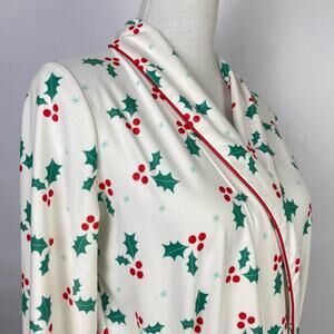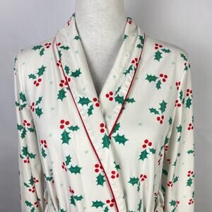 Sugar Bee | Bright Hollies White Red Green Print Holiday Christmas Short Robe