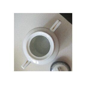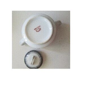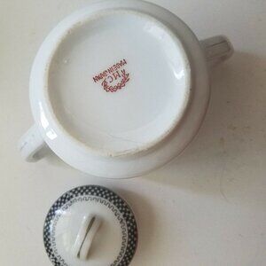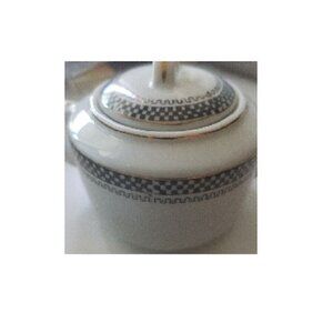Sugar Bowl MC Made in Japan White Black Checkerboard pattern Gold Trim Handles