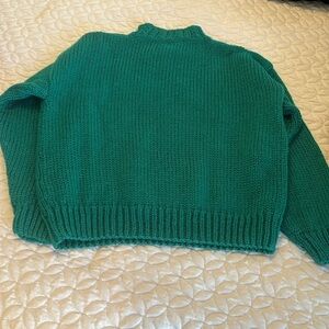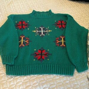 So pretty sweater which stretched the definition of “Ugly Christmas Sweater”! Beautiful colors! No piling. Love the braided look contrasting 2.5” turtle neck! Excellent condition!