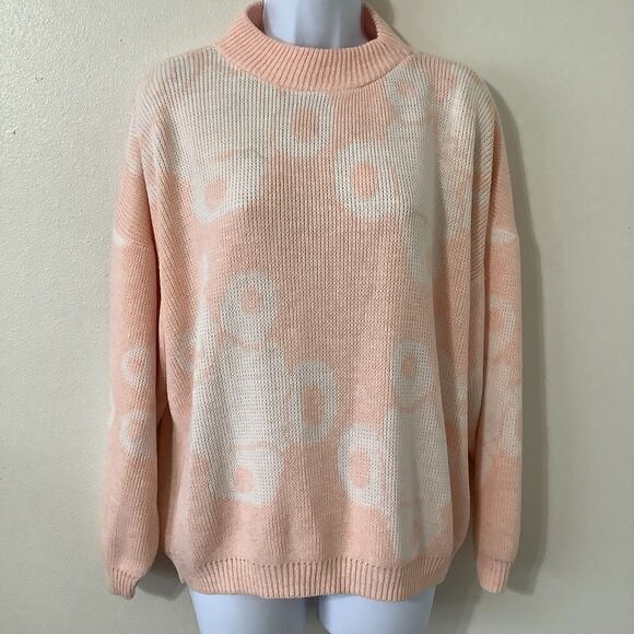Sugar Co. Vintage 80s Fairy Kei Pastel Pink Bear Knitted Sweater XL
