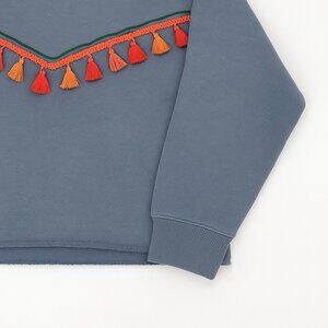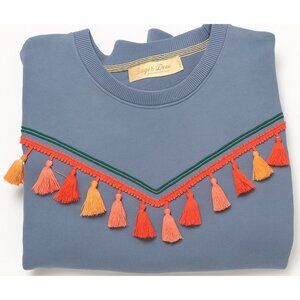 Sugar Dust Sweatshirt XS Cornflower Blue Tassel Fringe Boho Pullover Los Angeles