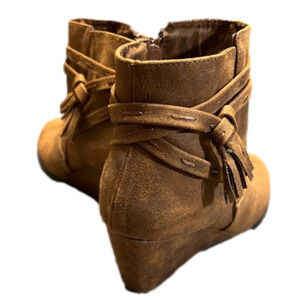 Sugar Hiya Women’s Cognac Brown Wedge Booties Size 8.5