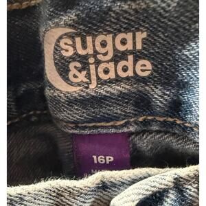 Sugar & Jade Jean Shorts Womens Petite 16 Blue Denim Pockets Distressed Raw Hem